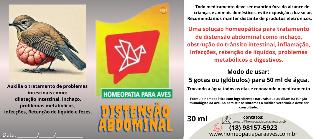 Este medicamento é uma abordagem segura e natural para tratar distensão abdominal em pássaros, promovendo o bem-estar sem riscos de intoxicação ou efeitos colaterais, quando utilizado corretamente.